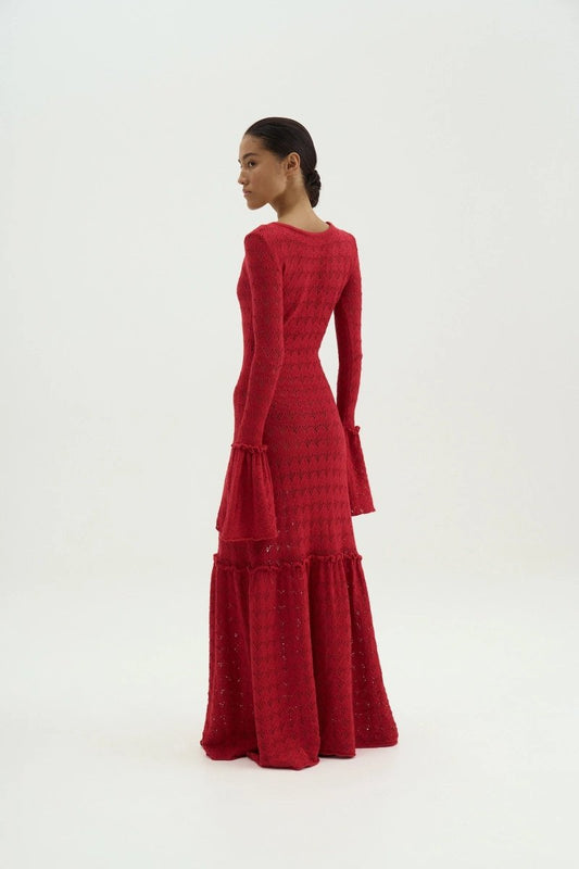 Anna Round Neck Flared Cuff Knitted Maxi Dress
