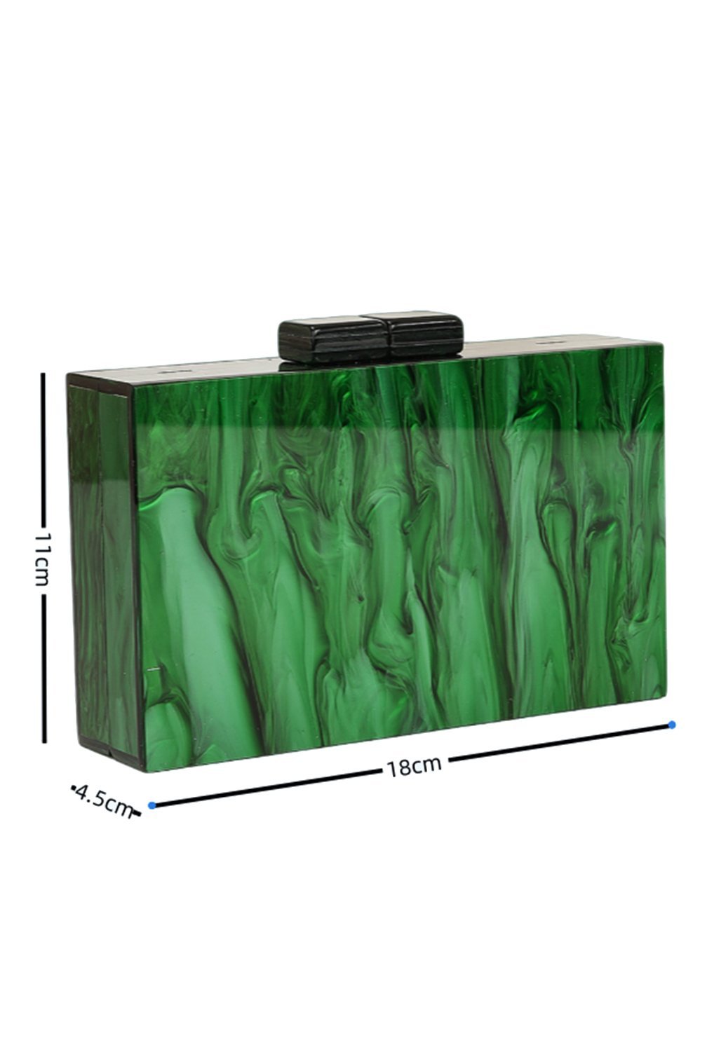The Beaded Chain Marbling Handbag features a distinctive marbled design with intricate beaded chain detailing. Its unique pattern and elegant chain handle add a touch of sophistication to your look.