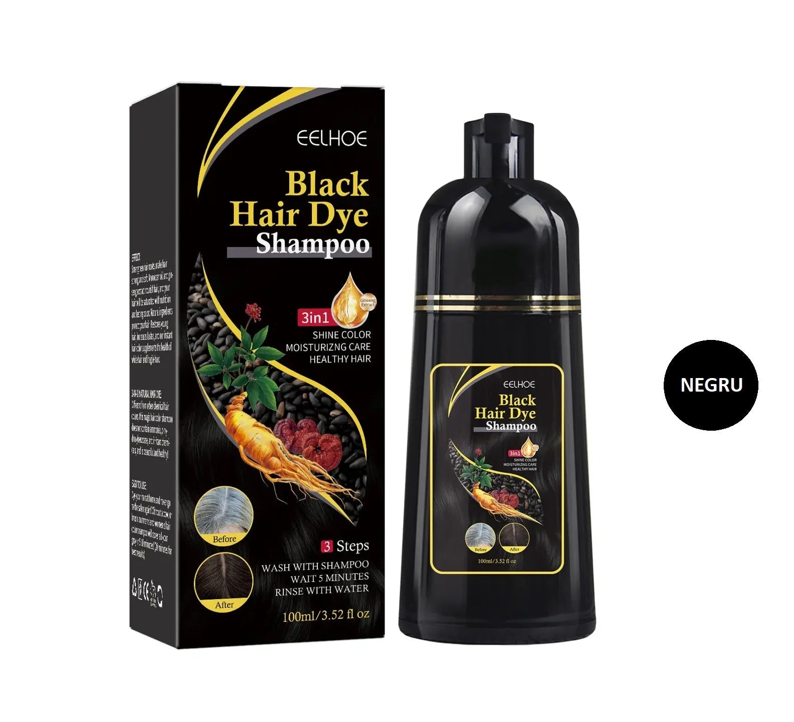 Compoziția acestui șampon de 100ml conține ingrediente naturale din plante, cum ar fi Ginseng și Ganoderma lucidum. Acestea nu doar colorează, ci și oferă un tratament benefic scalpului și părului tău. Formulă este blândă și îți îmbunătățește structura părului vizibil.